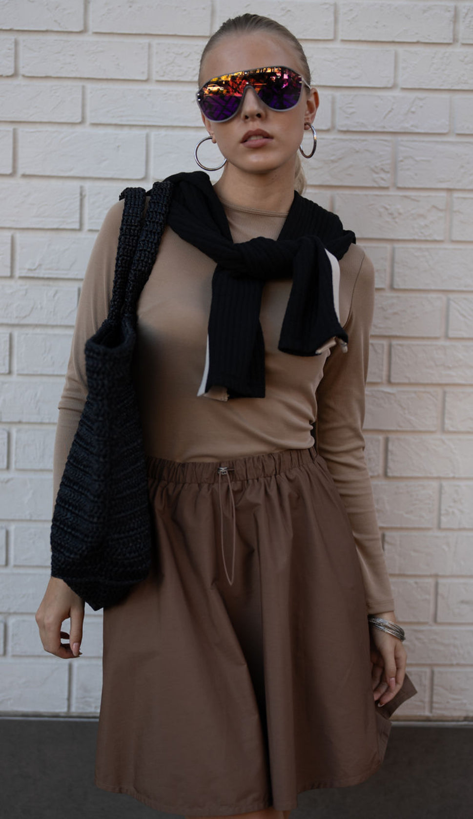 Effortlessly chic and endlessly wearable — this 19-inch skirt features a bungee cord waistband for a customizable fit and subtle modern edge.